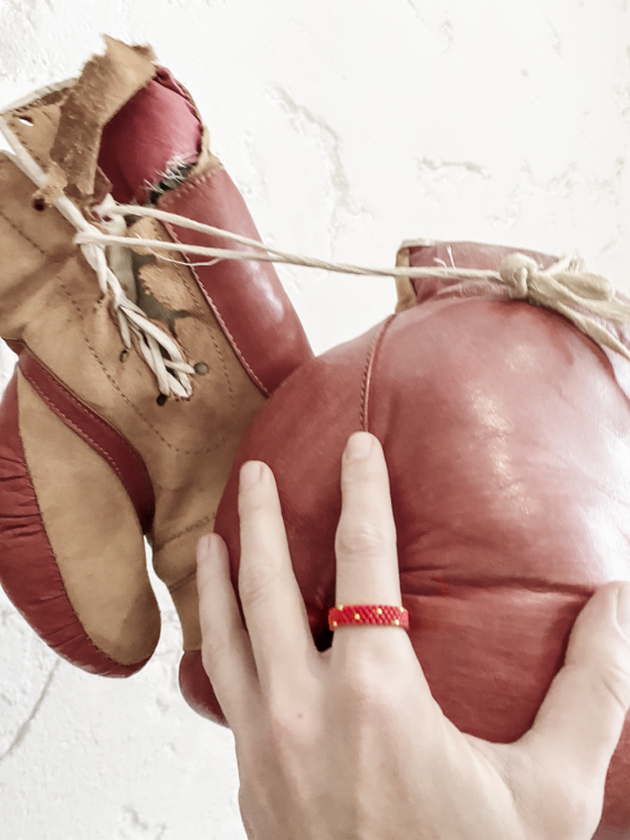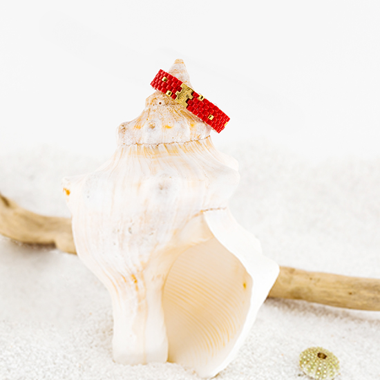 Bague fabriquée à la main, en perles de rocaille du Japon.