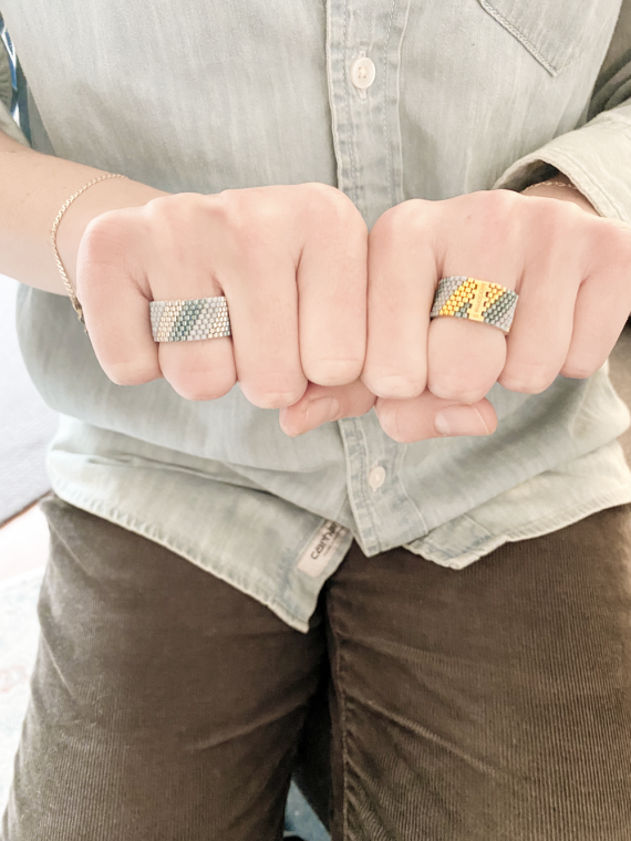 Bague fabriquée à la main, en perles de rocaille du Japon.