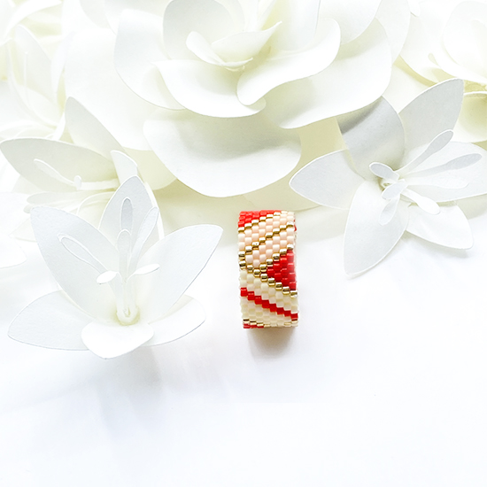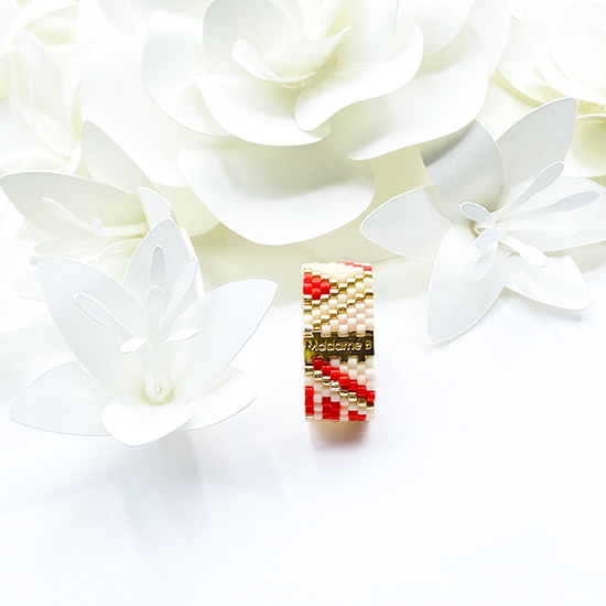 Bague fabriquée à la main, en perles de rocaille du Japon.
